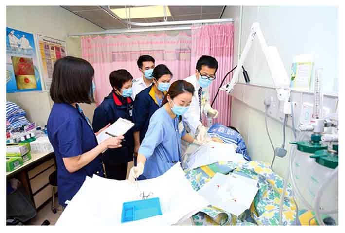 We organised 23 specialty simulation training programmes for doctors to enhance their career development opportunities and professional capabilities. 300 student nurses were enrolled in the Higher Diploma in Nursing Programme while 100 students participated in the Enrolled Nurses Training Programmes. Overseas training scholarships were provided to around 180 healthcare professionals including doctors, nurses and allied health staff. Due to the lack of local training for podiatrists, 3-year overseas scholarship was offered to 11 podiatrist students to attend training in the United Kingdom. Midwifery training programmes with an annual intake of 83 trainees were organised to meet escalating demand for maternity services in public hospitals. |